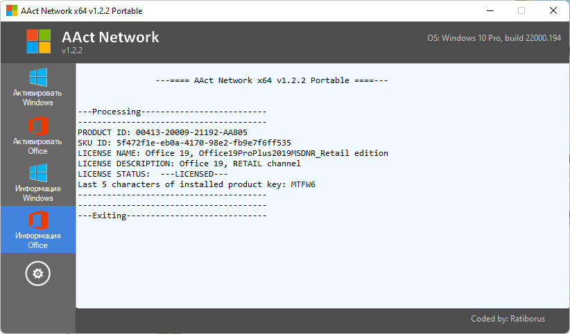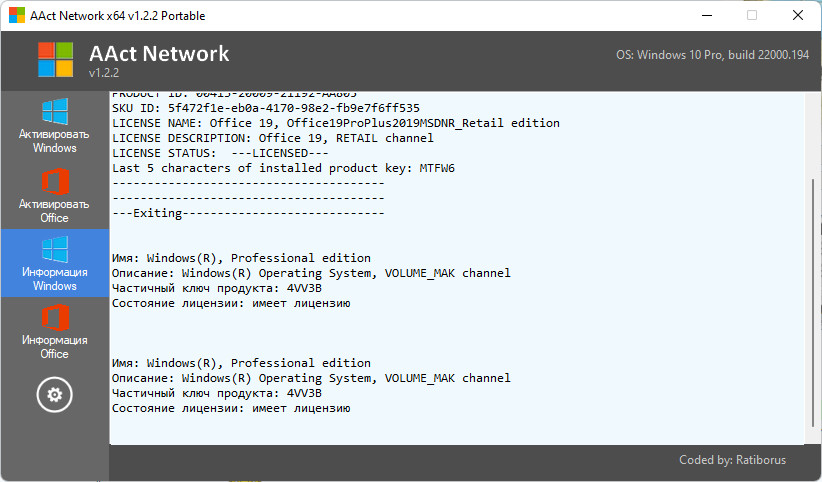 9-03-2026, 13:12, АктиваторыAAct представляет собой KMS-активатор, предназначенный для активации операционных систем Windows VL-редакций, включая Windows Vista, 7, 8, 8.1, 10, 11, а также серверных версий Windows Server 2008, 2008 R2, 2012, 2012 R2, 2016. Кроме того, программа поддерживает активацию офисных пакетов Office 2010, 2013, 2016 и 2019. Существует также возможность активации Office 2010 VL в операционной системе Windows XP. Приложение написано с использованием оригинальных технологий и реализует иную, отличную от традиционной, идеологию конструирования подобных программных средств. Программа не требует установки каких-либо версий .NET Framework и стабильно работает на всех системах от Windows XP до Windows 11 включительно.