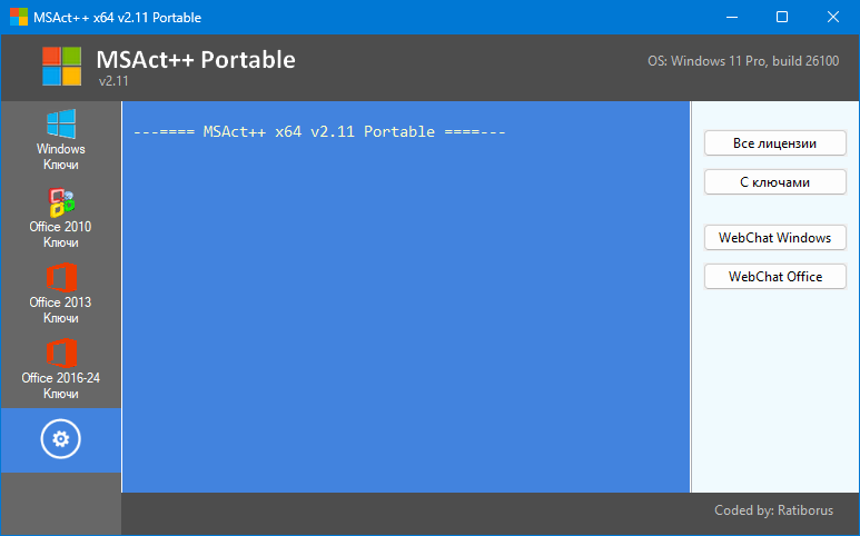 11-03-2026, 23:50, АктиваторыKMS Tools представляет собой сборник программ от известного разработчика Ratiborus, объединённых в единой программной оболочке. Пользователю достаточно выбрать нужную утилиту из представленного списка и сразу же приступить к работе — никакой установки не требуется, все компоненты являются полностью портативными. К каждой программе прилагается подробное описание на русском языке. Если у вас возникли вопросы относительно конкретного приложения или вы не знаете, для каких целей оно предназначено, достаточно нажать на вопросительный знак справа от названия, после чего появятся дополнительные значки рядом с наименованиями программ.