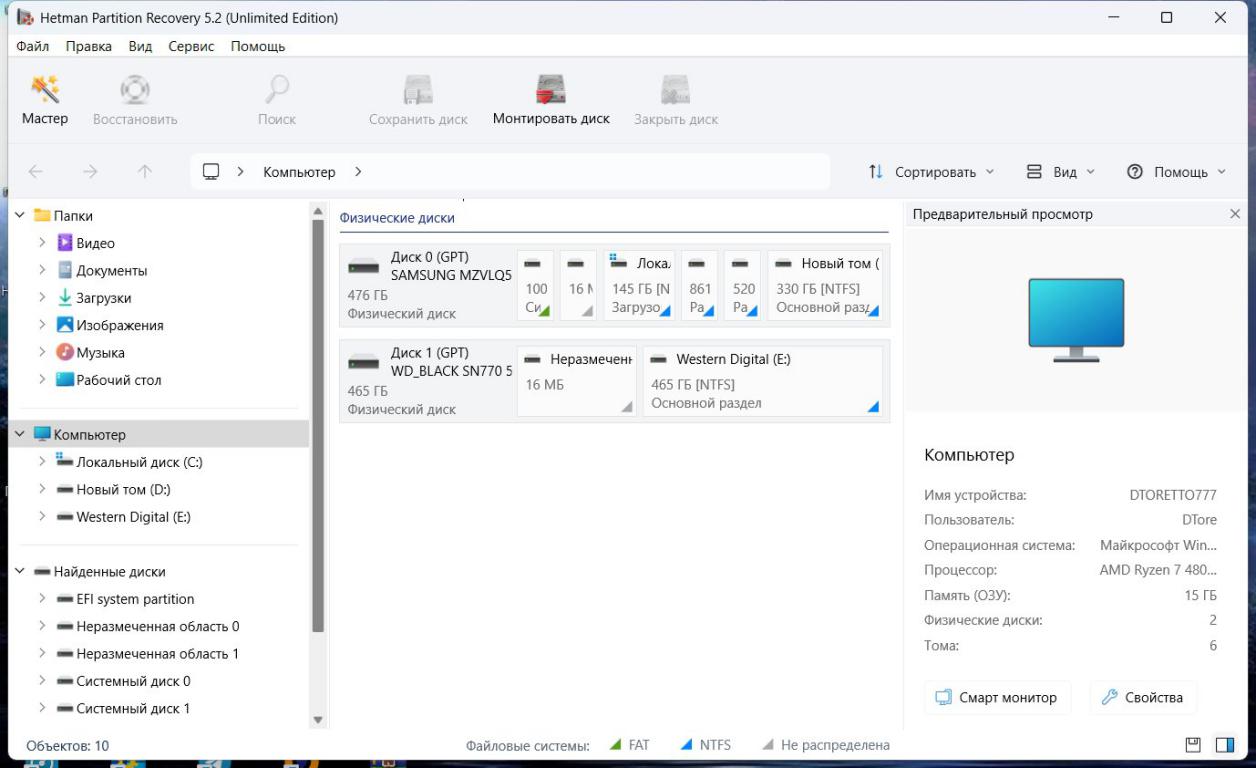 Hetman Partition Recovery представляет собой мощное программное решение, предназначенное для восстановления данных, утраченных с жестких дисков (как внутренних, так и внешних), а также с любых иных накопителей, функционирующих под управлением разнообразных файловых систем, включая FAT / exFAT, NTFS / ReFS, APFS / HFS+, Ext2 / 3 / 4, ReiserFS, Btrfs, VMFS, Hikvision, а также XFS, UFS и ZFS. Данная утилита интегрирует в себе комплекс специализированных алгоритмов, обеспечивающих восстановление не только содержимого файлов, но и их оригинальных имен, атрибутов и исходной иерархической структуры каталогов диска.