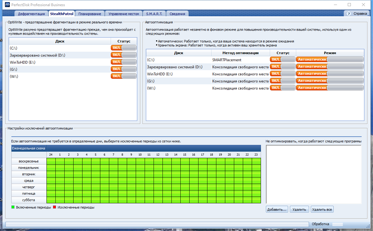 Совместная работа с версией PerfectDisk для Microsoft Exchange и автоматическая дефрагментация в различных режимах.