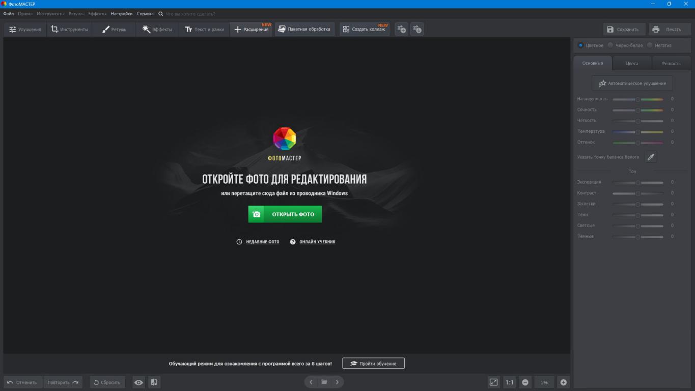 ФотоМАСТЕР представляет собой мощное, профессиональное и при этом интуитивно понятное программное решение, позволяющее быстро, качественно и с удовольствием улучшать цифровые фотографии любого уровня сложности. Благодаря инновационной архитектуре и продуманной системе управления историей изменений, "ФотоМАСТЕР" даёт вам уникальную возможность гибко изменять любые параметры фотоснимков и при необходимости отменять эти изменения в абсолютно любом порядке без малейшей потери исходного качества изображения.