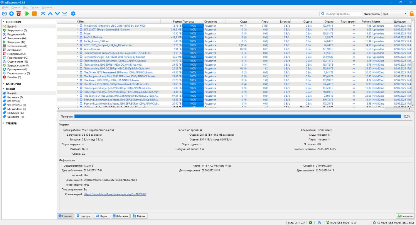 Поддержка системы меток (тегов) для удобной категоризации и организации торрентов.