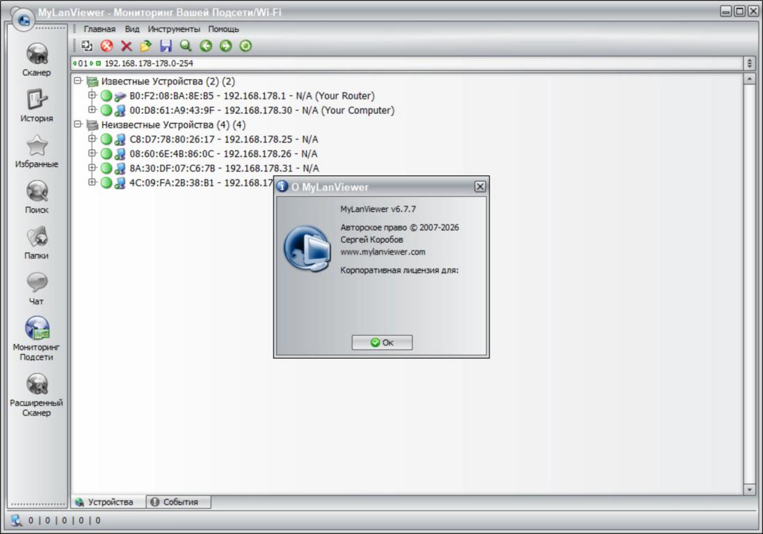 MyLanViewer — это удобная утилита для сканирования и контроля компьютеров в локальной сети с возможностью обнаружения общедоступных ресурсов. Программа отображает устройства в наглядном виде, предоставляя подробную информацию о каждом узле: имя компьютера, IP-адрес, MAC-адрес, доступные папки и другие характеристики. С её помощью можно отслеживать активность устройств в сети и получать уведомления при изменении их состояния. Дополнительно доступно управление общими ресурсами — можно ограничивать доступ, закрывать активные подключения и контролировать использование файлов.