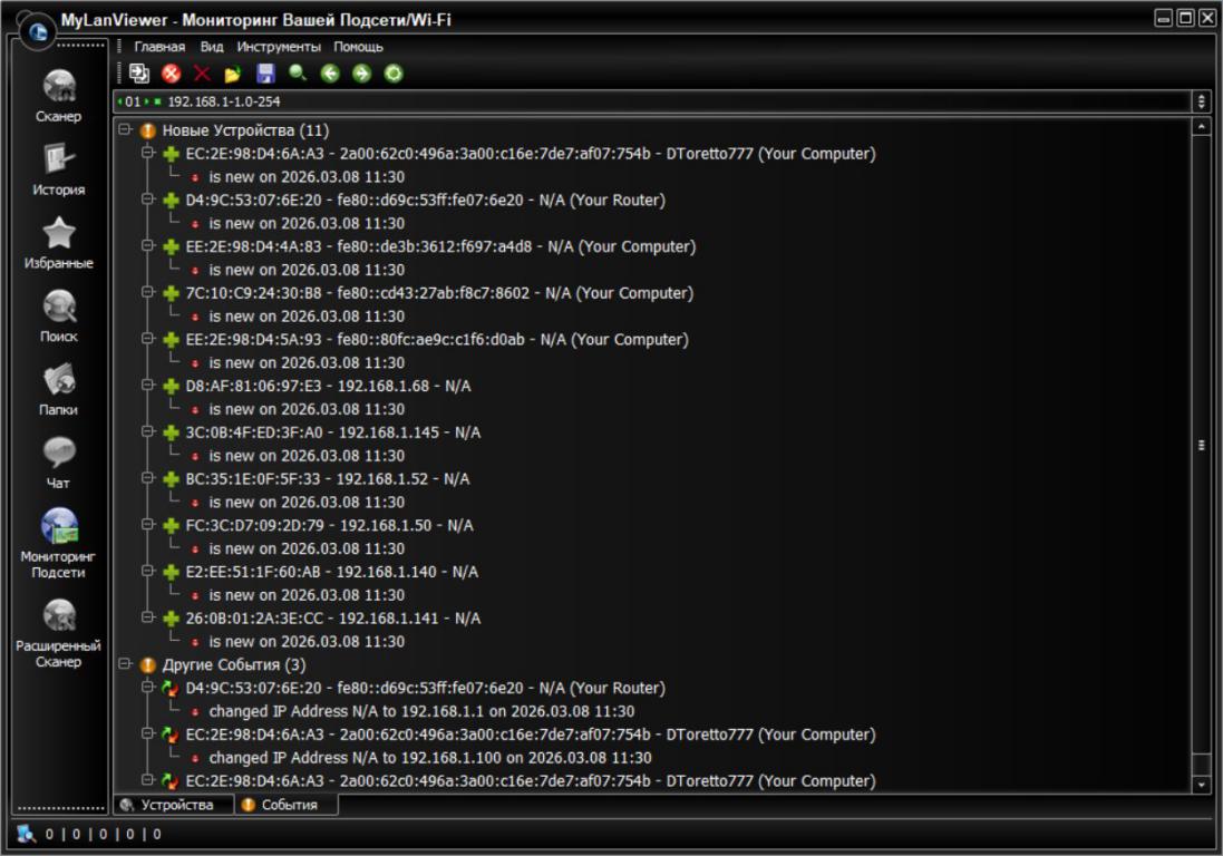 20-03-2026, 15:27, Интернет и сетьMyLanViewer представляет собой специализированную программу, предназначенную для сканирования и непрерывного мониторинга компьютеров в локальной сети, а также для поиска общедоступных файлов на обнаруженных устройствах. Приложение отображает все найденные компьютеры в удобном для просмотра виде, где для каждого устройства указывается его сетевое имя, IP-адрес, MAC-адрес, список доступных общих ресурсов и множество других деталей. С помощью MyLanViewer вы можете вести наблюдение за компьютерами в сети и получать мгновенные оповещения, когда состояние любого из отслеживаемых устройств изменяется (например, оно включается или выключается).
