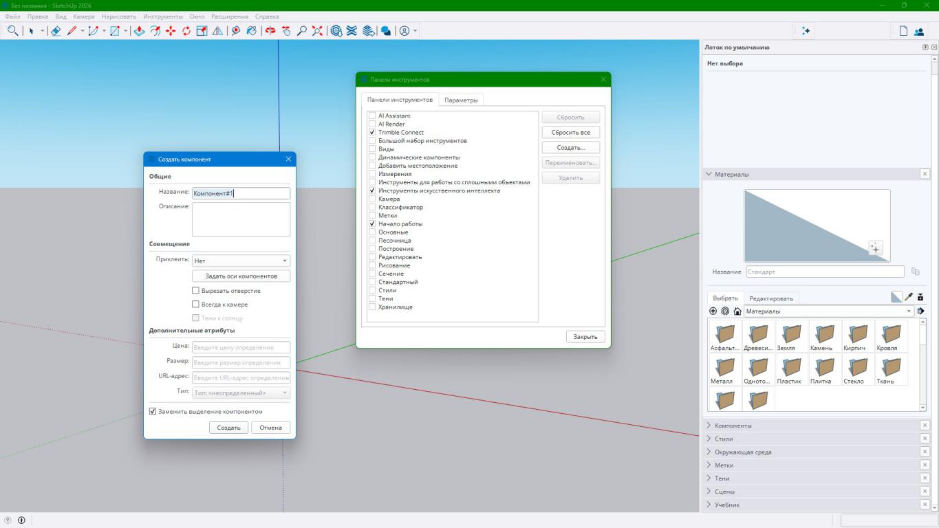 Добавлять предустановленные компоненты (например, модели деревьев, автомобилей, дверных и оконных блоков, а также стилизованные фигуры людей) либо конструировать новые компоненты самостоятельно.