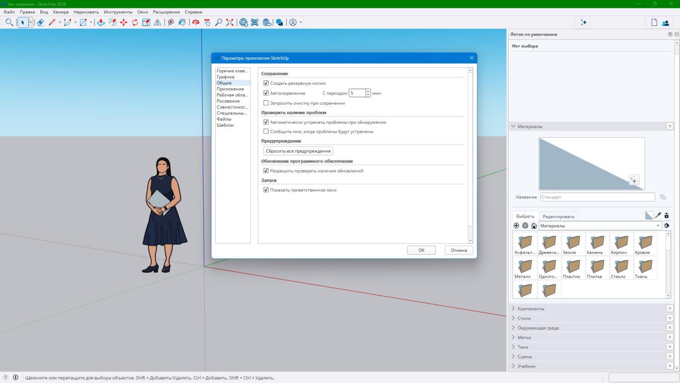 Имеется возможность печати той части модели, которая отображается в рабочей области программы SketchUp.