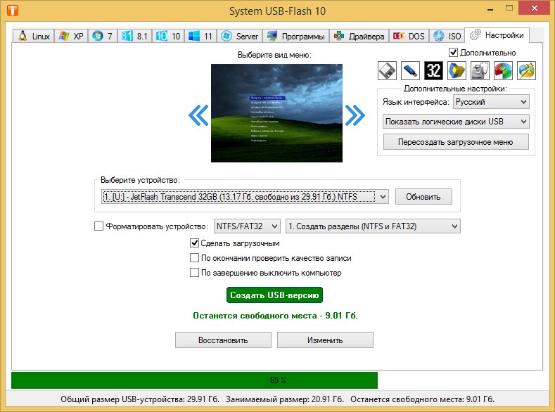 System USB-Flash представляет собой продвинутую утилиту-конструктор, предназначенную для создания универсальных загрузочных USB-носителей. Данная программа разработана специально для пользователей, не обладающих глубокими познаниями в области установки операционных систем, и позволяет быстро и просто подготовить флешку любого объёма — от 1 ГБ до 64 ГБ и выше. Благодаря гибкому интерфейсу и автоматизированным настройкам, утилита одинаково востребована как у домашних пользователей, так и у профессиональных системных администраторов.