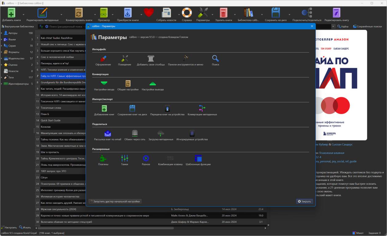 Организация и управление библиотекой Calibre предоставляет широкие возможности по управлению вашей коллекцией электронных книг. Основополагающая концепция программы заключается в том, что множественные экземпляры одной и той же книги, имеющиеся в различных форматах, отображаются в библиотеке как единая запись (одна книга). Пользователь может выполнять сортировку и поиск книг на основе разнообразных метаданных, включая: название произведения, имя автора, дату публикации, дату добавления в библиотеку, размер файла, принадлежность к книжной серии, присвоенный рейтинг и многие другие параметры. Также реализована поддержка тегов, комментариев и пользовательских обзоров. Вы без труда сможете отыскать нужную книгу, используя как простой строковый поиск, так и применяя расширенный поиск с множеством критериев. Все добавляемые вами книги программа автоматически организует в четкую и иерархическую структуру папок на вашем жестком диске. Кроме того, Calibre способна выполнять поиск метаданных и обложек для книг в сети Интернет, используя введенное название, имя автора или международный стандартный книжный номер ISBN. Система поиска метаданных реализована на основе подключаемых модулей (плагинов) и может быть легко расширена пользователем самостоятельно.