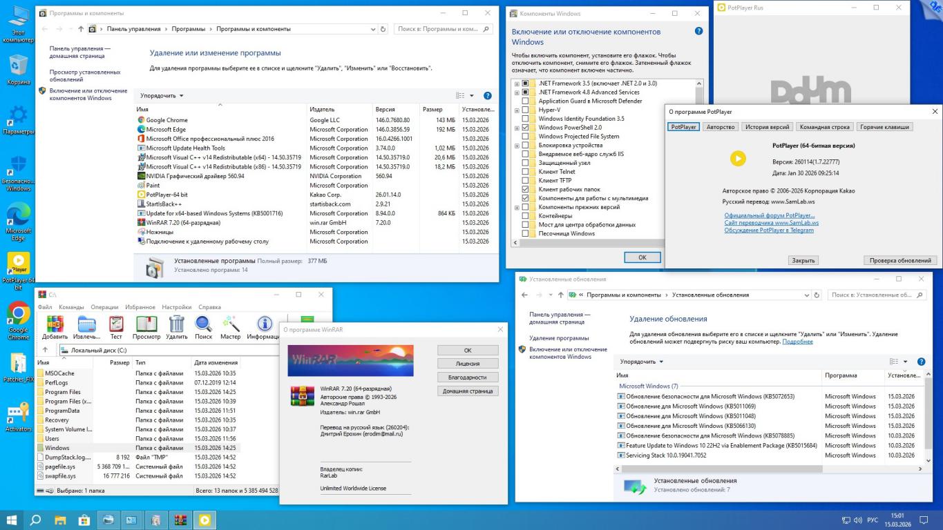 В состав сборки интегрированы следующие компоненты: - все накопительные обновления безопасности и системные исправления по 10 марта 2026 г. включительно; - компоненты .NetFramework 4.8.1 с обновлениями по октябрь 2025 г.; - подборка официальных тем оформления из магазина Microsoft и дополнительные фоновые изображения.