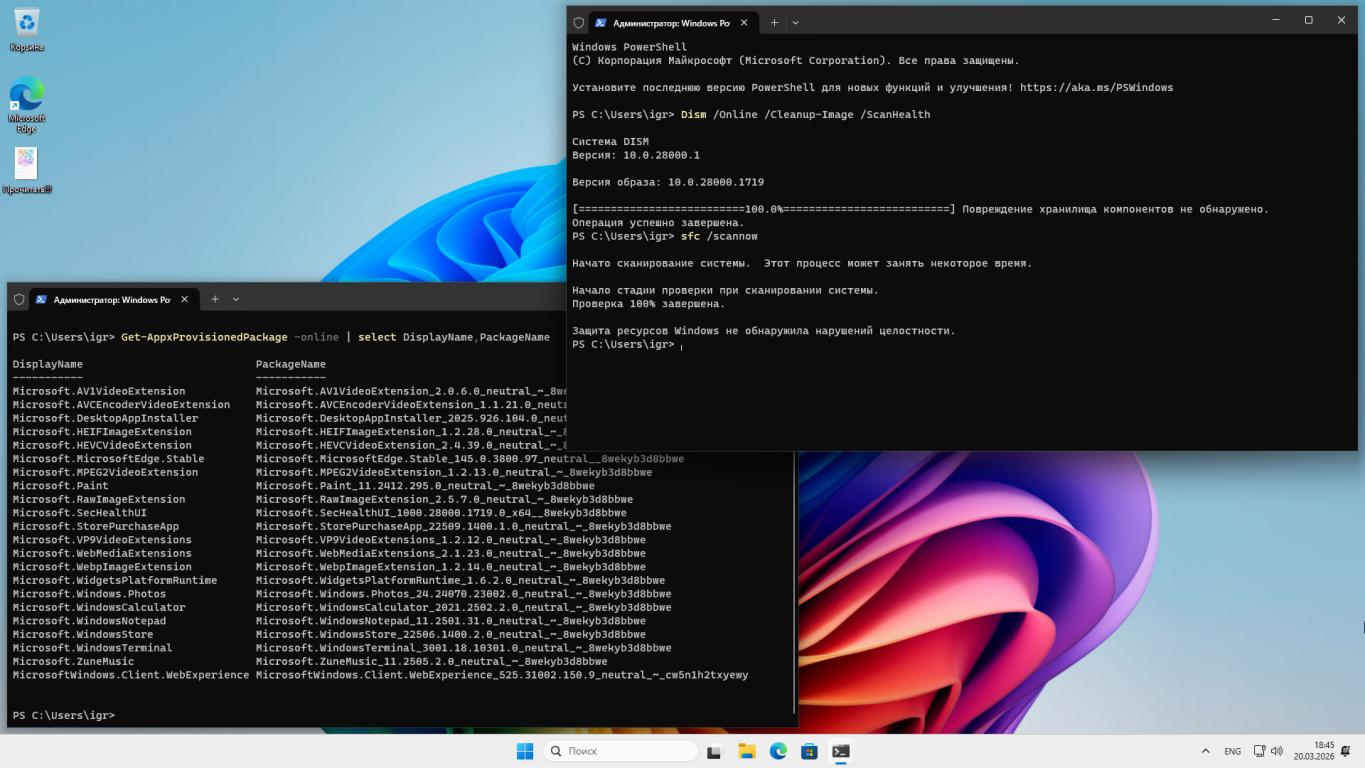Нажмите правой кнопкой мыши на кнопку «Пуск» и выберите пункт «Терминал (Администратор)». Должно открыться окно с заголовком «Администратор: Windows PowerShell»)