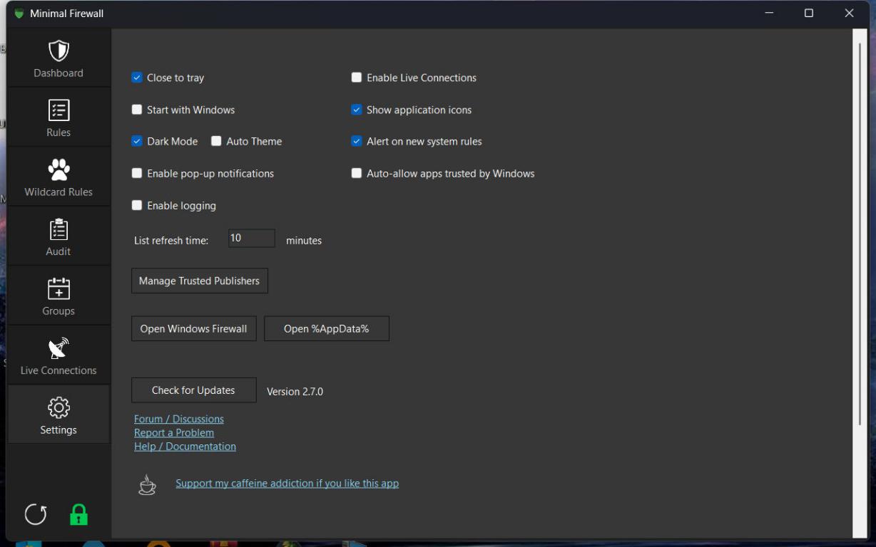 Minimal Firewall представляет собой портативный интерфейс управления встроенным брандмауэром Windows, который информирует пользователей о попытках установления интернет-соединений без необходимости внесения модификаций в ядро системы или отключения изоляции ядра, обеспечивая оптимальный баланс между защитными механизмами Windows Defender и расширенной функциональностью Simplewall.