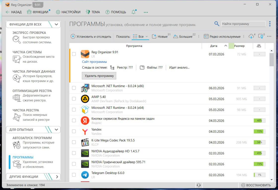 Reg Organizer представляет собой многофункциональный программный комплекс, предназначенный для всестороннего обслуживания и тонкой настройки системного реестра операционных систем семейства Microsoft Windows. Приложение позволяет выполнять тщательную чистку реестра от устаревших и ошибочных записей, а также производить его эффективное сжатие и дефрагментацию для повышения общей производительности системы. В состав утилиты входит мощный редактор системного реестра, а также расширенная функция поиска и замены данных внутри реестра. С помощью Reg Organizer можно осуществлять предварительный просмотр содержимого импортируемых REG-файлов (в том числе непосредственно из окна Проводника). Кроме того, программа позволяет производить полное и качественное удаление программного обеспечения (технология Full Uninstall), гарантированно подчищая все «хвосты» — остаточные файлы и записи в реестре, которые неизбежно остаются в системе при стандартном удалении приложений.