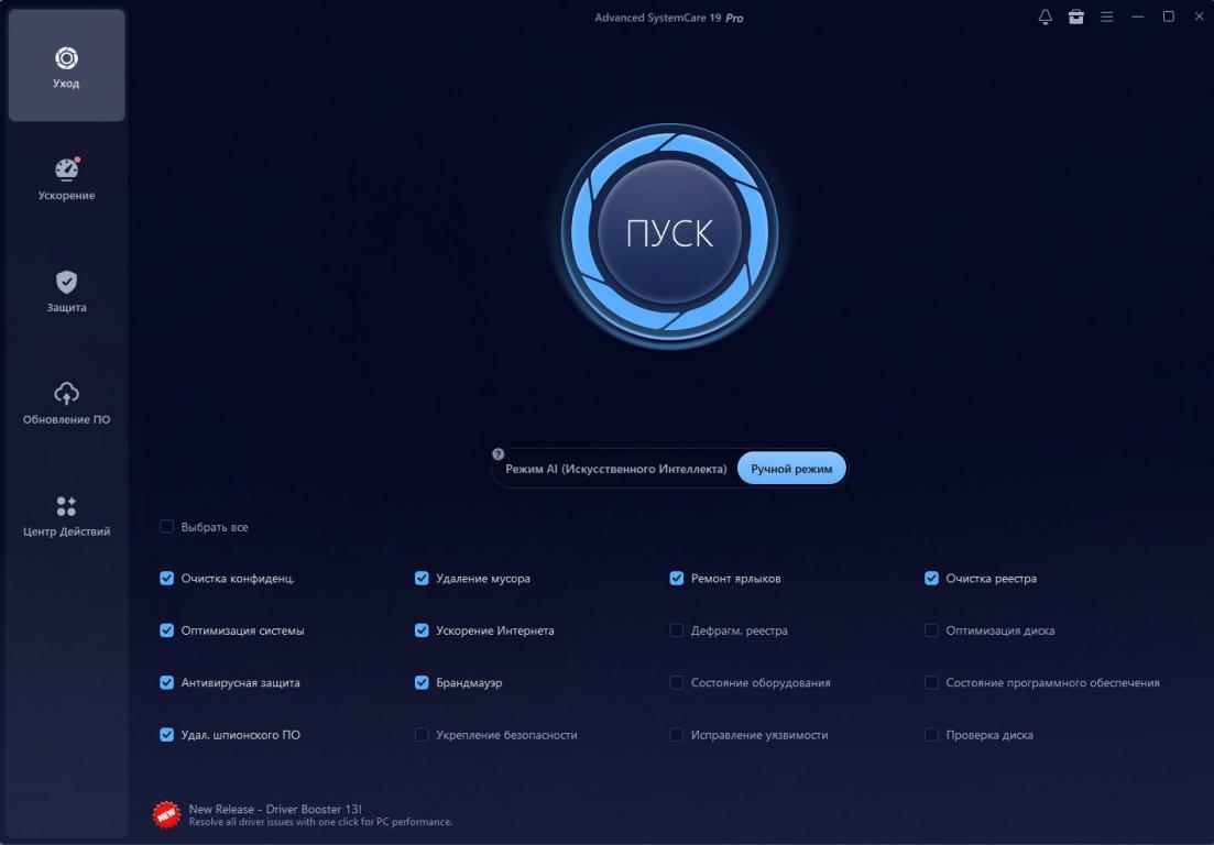 Новый интерфейс пользователя потребляет меньше ресурсов и работает быстрее. С новым интерфейсом Advanced SystemCare Pro запускается намного быстрее и использует меньше системных ресурсов.